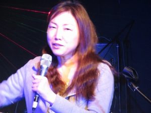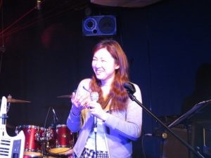 ヴォーカルのNANAさんです。上木氏の伴奏がやはりベース中心ですので、慣れない私が見ているとなぜそこで歌い始めるのかわからないのですが、よく聞くと息ピッタリなんですね。NANAさんかっこいいです。
